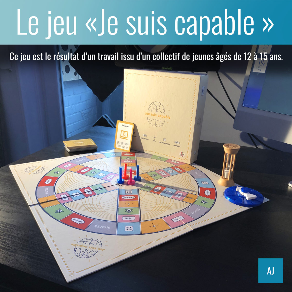 « Jeu suis capable » est le résultat d’un travail issu d’un collectif de jeunes âgés de 12 à 15 ans du Cedas asbl. L’idée est survenue durant l’Accompagnement aux Jeunes du comment on pourrait faire pour passer de l’agréable à l’utile durant « les différents temps libre » des jeunes à l’AJ (école de devoirs). Autrement dit : « Comment revoir ses cours de manière ludique et sans s’en rendre compte ?